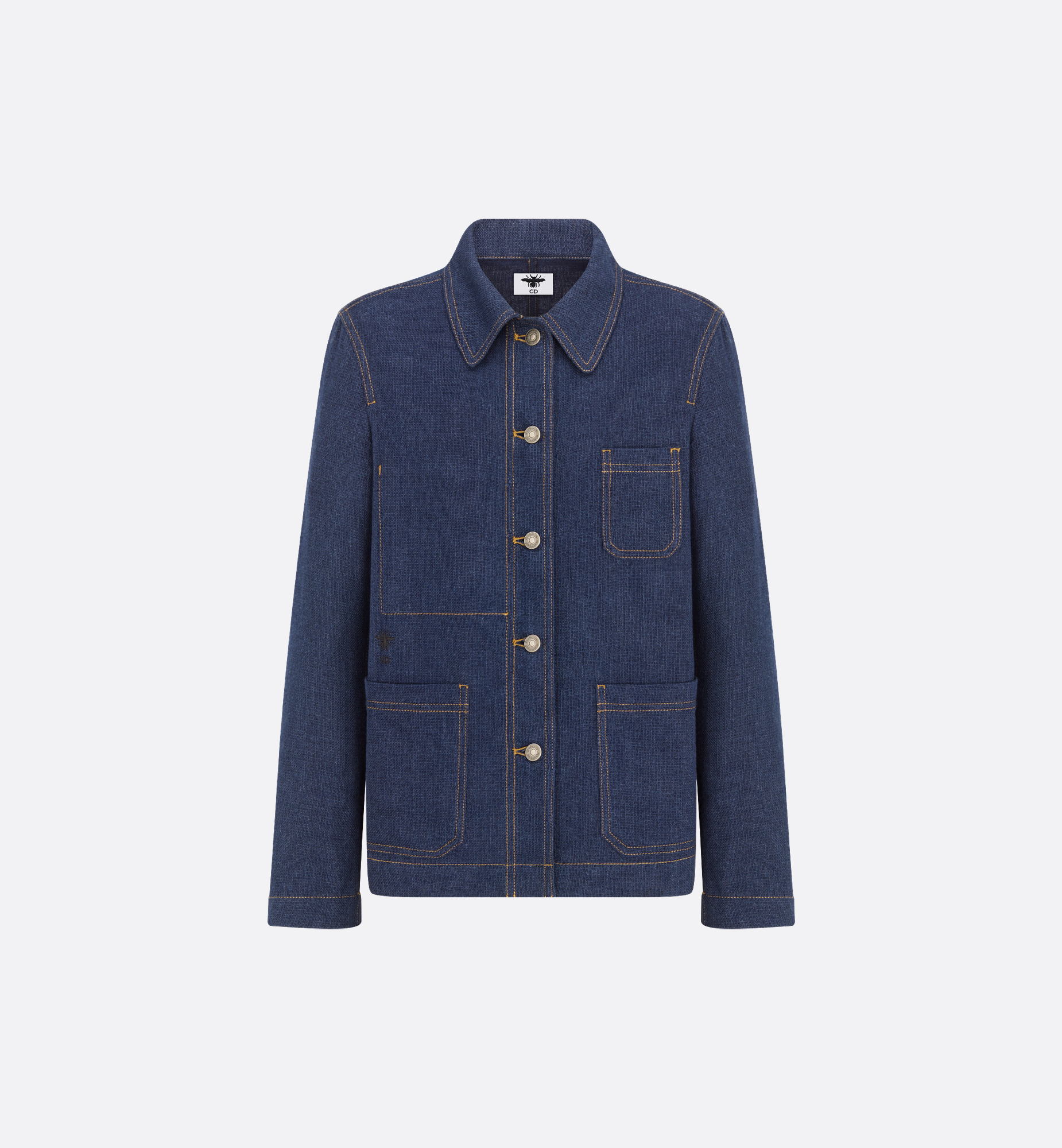 The Caro jacket is defined by its regular fit and timeless aesthetic. Crafted in deep blue cotton denim, it is embellished with an embroidered bee as well as three patch pockets on the front. Completed by a Christian Dior Paris leather jacron label on the back, the Caro jacket will pair with the matching jeans for a signature look. - Embroidered hallmark bee and CD signature - Front button closure - Christian Dior metal buttons - Rear Christian Dior Paris jacron label - Unlined - 100% cotton - Made in Italy Size & Fit - Regular fit - Long sleeves - Using our personalized tool will provide you with the best size recommendation - For more information, please review the size guide