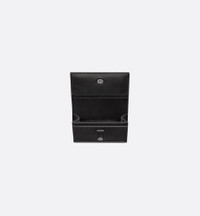 The business card holder is a practical accessory with a sophisticated aesthetic. Crafted in black grained calfskin, it is enhanced by a CD Icon signature on the front. It features a gusset compartment with a slot and two other card slots on the flap. The business card holder can easily be carried in any pocket or bag. - Main composition: calfskin - Calfskin and technical fabric lining - Gusset compartment with card slot - Two card slots on the flap - Ruthenium-finish brass CD Icon signature on the front - Embossed Dior signature on the interior - Dust bag included - Made in Italy or Spain Size & Fit - Dimensions: 10.5 x 7 x 2 cm / 4 x 3 x 1 inches (Length x Height x Width) - The size is suitable for business and credit cards - Size and weight details may vary depending on the product's material