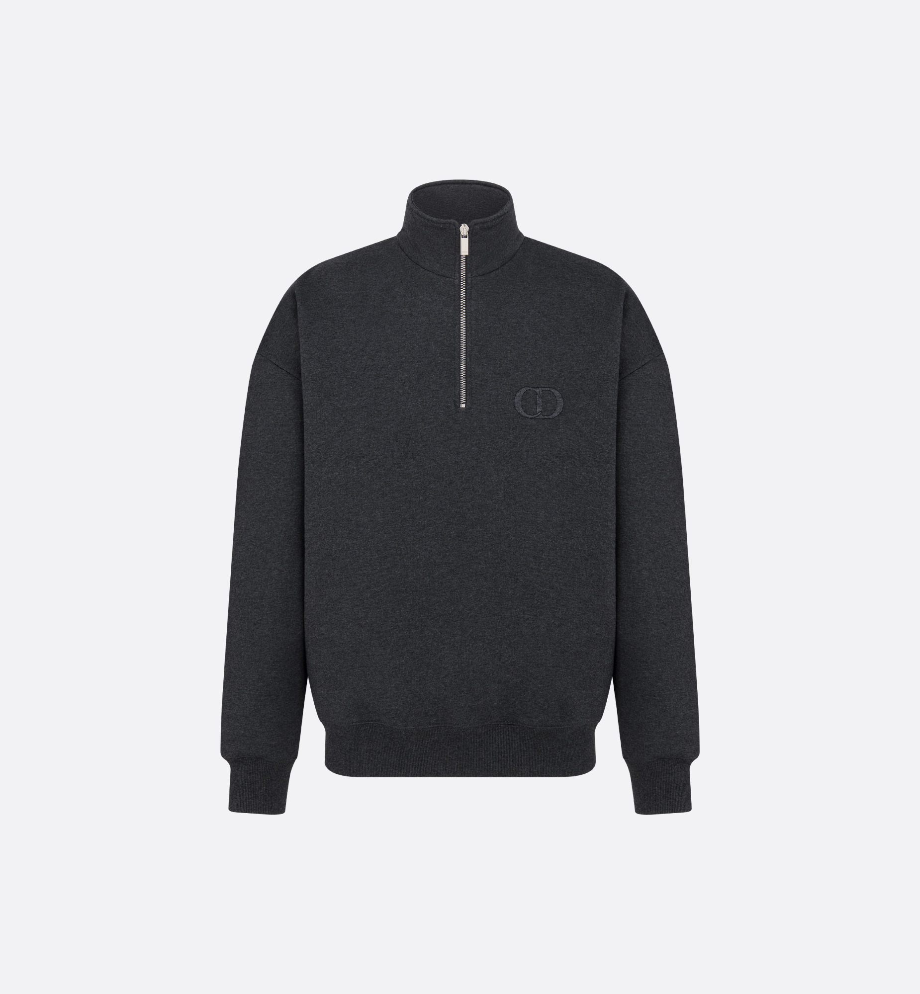 The CD Icon half-zip sweatshirt is a modern twist on a classic piece. Crafted in deep gray cotton fleece, it showcases a debossed CD Icon signature embroidered on the chest as well as an oversized fit. Featuring a zipped neckline, the sweatshirt can be coordinated with a pair of the season's jeans for a resolutely modern look. - Debossed CD Icon embroidery on the chest - Zipped stand collar - Ribbed hem and cuffs - 100% cotton - Made in Italy Size & Fit - Oversized fit - This item is designed for a loose fit with a dropped shoulder — we recommend ordering your regular size - Using our personalized tool will provide you with the best size recommendation - For more information, please review the size guide