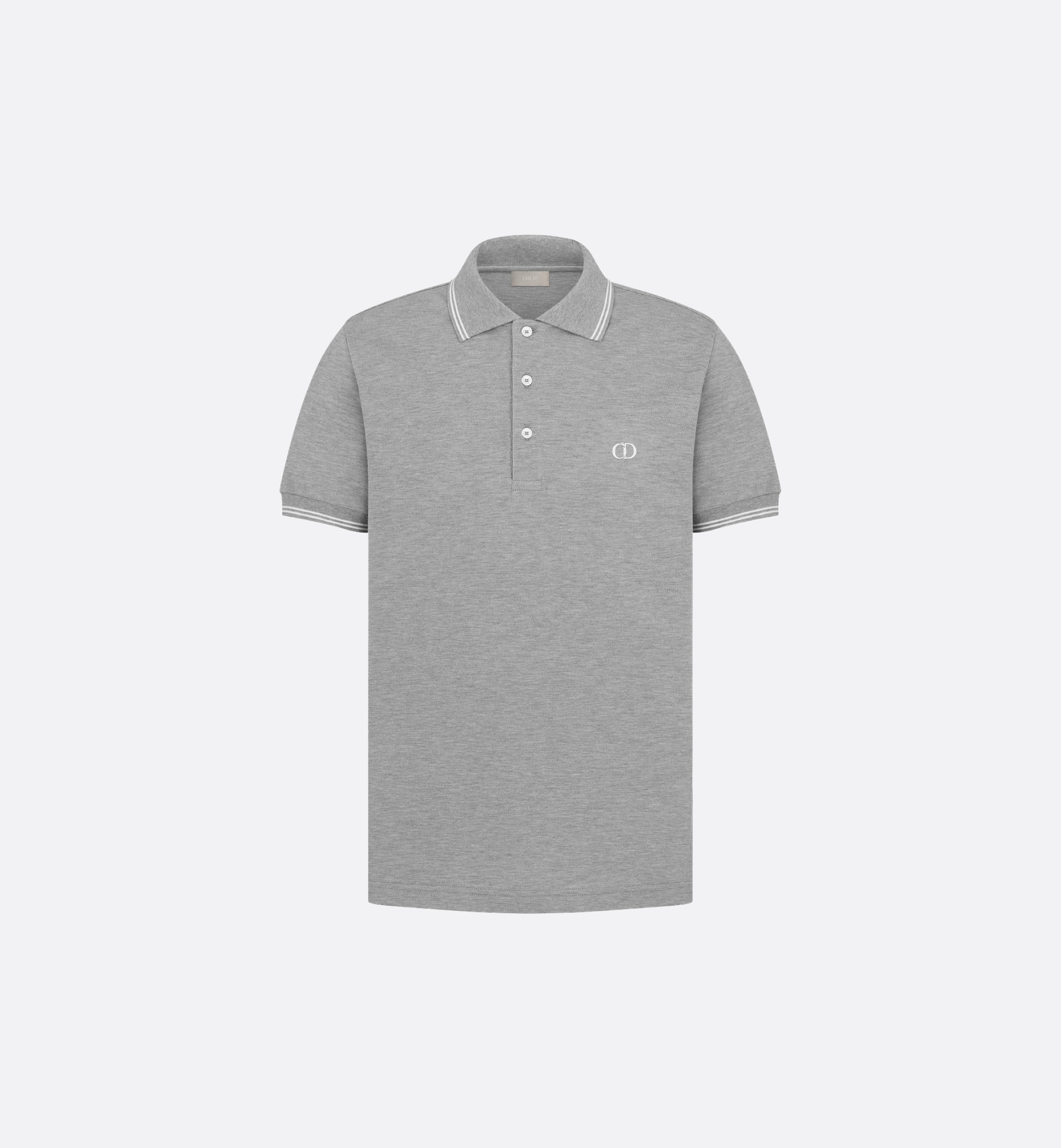 The CD Icon polo shirt is a laid-back and timeless style. Crafted in gray cotton pique, it showcases the CD Icon signature on the chest and contrasting bands on the collar and cuffs. The fitted polo shirt will pair well with tailored pants for an elegant athletic silhouette. - CD Icon signature embroidered on the chest - Polo collar - Ribbed collar and cuffs - 100% cotton - Made in Italy Size & Fit - Fitted silhouette - Garment length: 75 cm / 29.5 inches (size M) - The model measures 189 cm / 74.5 inches and the item shown is in size M (FR) - Using our personalized tool will provide you with the best size recommendation - For more information, please review the size guide