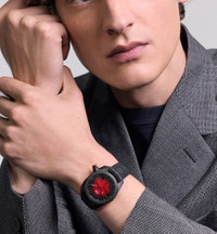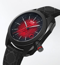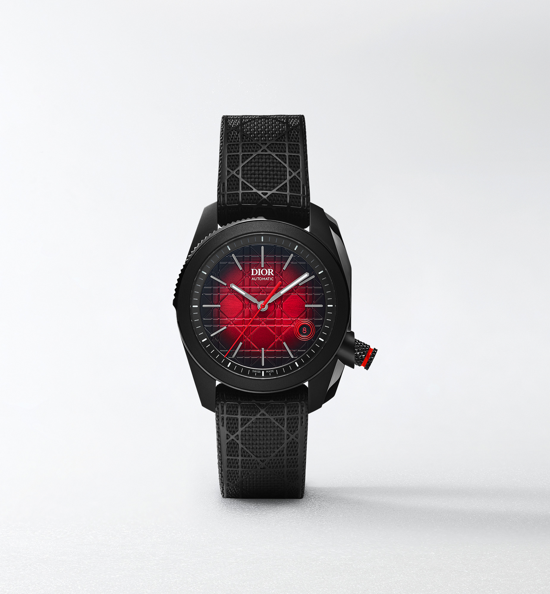 Since its launch in 2004, Chiffre Rouge has stood out as a bold and unique timepiece thanks to the architectural asymmetry of its bipartite round case, reinforced by the position of its crown at 4 o'clock. Twenty years after its inception, the iconic collection straddles tradition and transformation through new pieces that embody emblematic House codes, seen in details chosen for their elegance and couture aesthetic. In particular, some of the never-before-seen designs feature a vibrant shade of red — 'the color of life,' to quote Mr. Dior — in a stunning gradient on a metal-finish dial. The collection is an ode to the House's creative excellence. - Case: 38 mm (1.5) black DLC-coated steel - Black DLC-coated steel bezel, notched between 9 o'clock and 12 o'clock - Black screw-down crown at 4 o'clock with red border and CD engraving - Water resistant: 100 meters (328 feet) - Gradient red brass dial with embossed Cannage motif - Luminescent hour and minute hands and brass indices - Red second hand - Anti-glare sapphire crystal - Black rubber strap with Macrocannage motif, standard size - Ultramatte black steel folding clasp with easy-fastening system - The design is compatible with Chiffre Rouge interchangeable straps for O 38 mm - If the standard size Chiffre Rouge strap is not the right fit, we recommend visiting a boutique for a more suitable size - CD.002 automatic movement - Approximately 50-hour power reserve - Functions: Hours - Minutes - Seconds - Date - Oscillations: 28,800/hour - Frequency: 4 hertz - Five-year warranty - Made in Switzerland