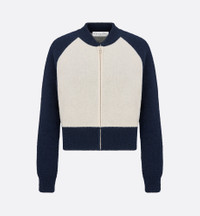 The sportswear bomber jacket is reimagined in a variation made with the 'CHRISTIAN DIOR 8' lettering on the back. Crafted in ecru and blue technical wool knit, the design boasts raglan sleeves. The bomber jacket will lend a relaxed touch to any of the season's looks. - 'CHRISTIAN DIOR 8' lettering on back - Front zip closure - Ribbed collar, cuffs and hem - 86% wool, 7% polyamide, 7% acrylic (12-gauge)* - Made in Italy Size & Fit - Fitted silhouette - Back length: 47 cm / 18.5 inches (size M) - Long sleeves - For more information, please review the size guide