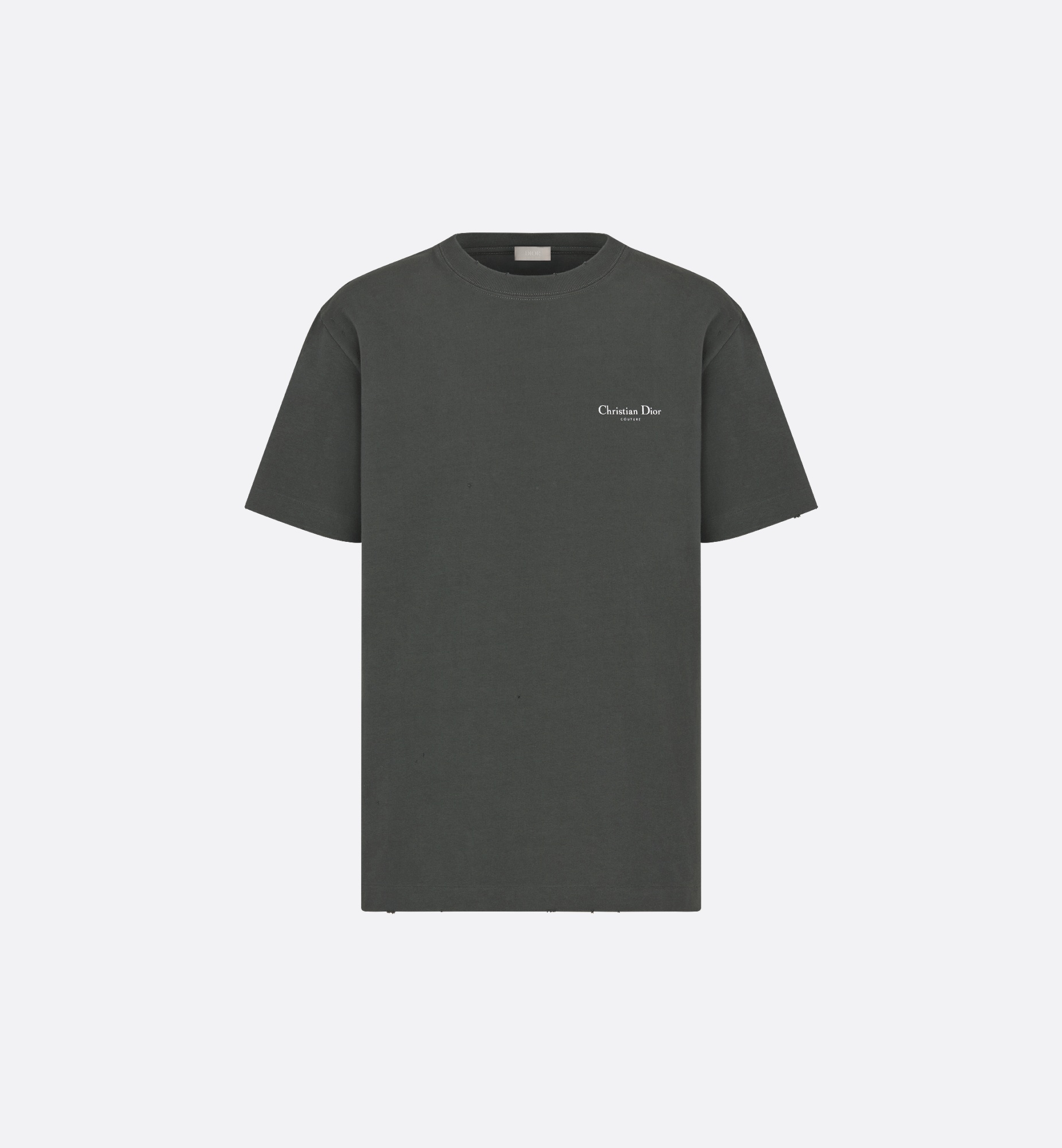 New for Fall 2025, the Christian Dior Couture Lily of the Valley T-shirt adds an original touch to a timeless style. Crafted in black distressed-effect cotton jersey, it is printed on the back with the Christian Dior Couture signature embellished with a lily of the valley flower in homage to Mr. Dior's passion for flowers. Featuring a comfortable silhouette, the T-shirt will coordinate effortlessly with any jeans. - Christian Dior Couture Lily of the Valley print on the back - Distressed-effect details - Christian Dior Couture signature on the front - Crew neck - 100% cotton - Made in Italy Size & Fit - Relaxed fit - This item is designed for a slightly loose fit – we recommend ordering your regular size - The model measures 187 cm / 73.5 inches and the item shown is in size M (FR) - Using our personalized tool will provide you with the best size recommendation - For more information, please review the size guide