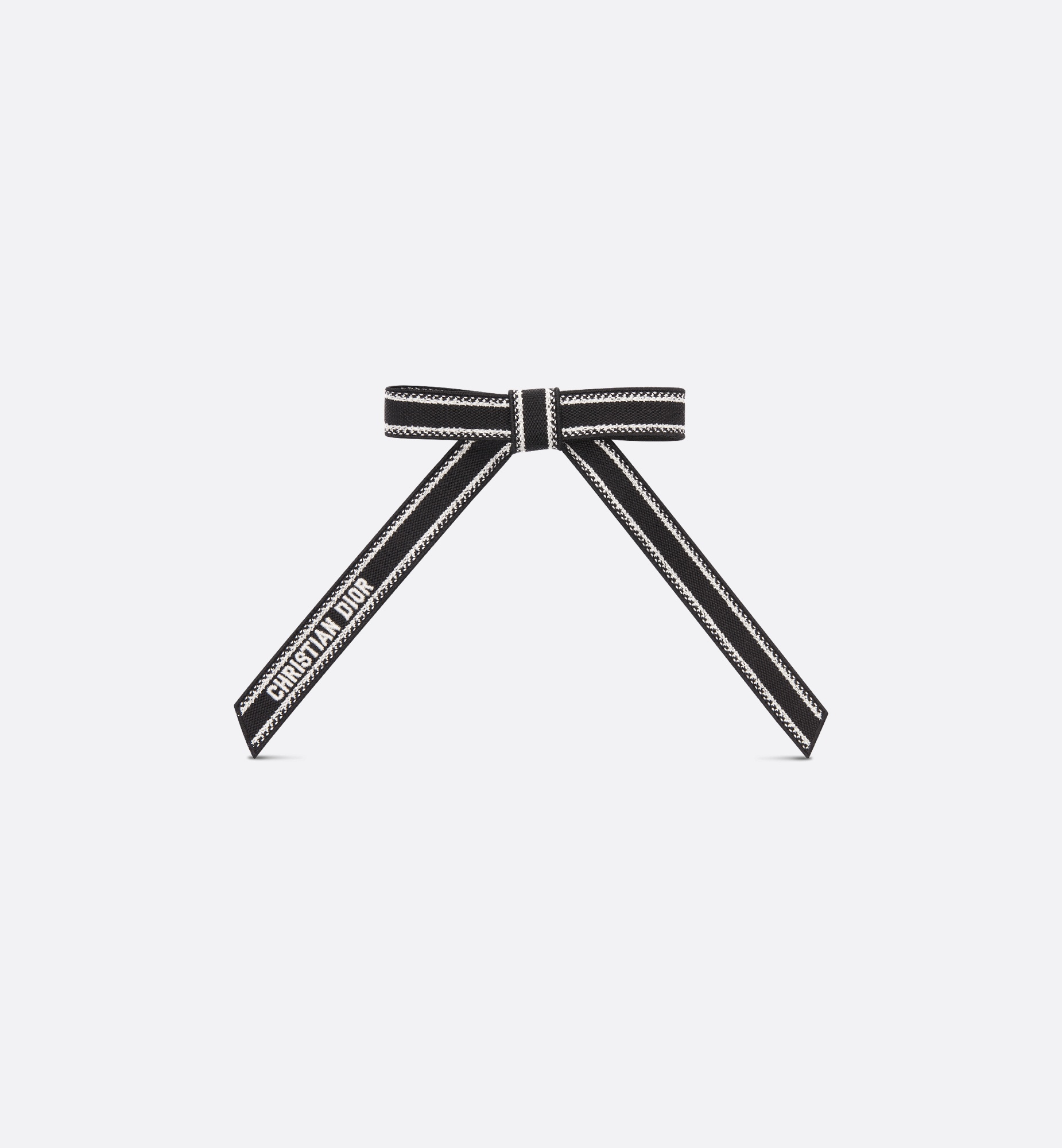 New for Winter 2024, the black and white Dior Twist bow is a design imbued with House codes of refinement. The fully embroidered bow is delicately adorned with the Christian Dior signature and will enhance any hairstyle with a touch of elegance. - White embroidered Christian Dior signature - Engraved Christian Dior Paris signature on the back - Pin fastening - 75% cotton, 15% polypropylene, 10% polyester - Made in Italy Size & Fit - One size