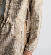 The hooded cropped jacket showcases the iconic Dior Oblique motif. Crafted in beige technical jacquard taffeta, it features a zip closure, two large flap pockets and a zipped chest pocket. The style is completed by a utilitarian-inspired integrated belt and Christian Dior band on the back. The laid-back jacket can be paired with other Dior Oblique creations. - Embroidered hallmark bee and CD signature - Christian Dior band on the back - Integrated belt with utilitarian-inspired buckle - Unlined - 100% polyester - Made in Italy Size & Fit - Cropped relaxed fit - Long sleeves - The model measures 179 cm / 70.5 inches and the item shown is in size 36 (FR) - Using our personalized tool will provide you with the best size recommendation - For more information, please review the size guide