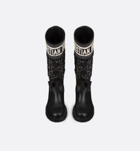 The D-Major boot showcases bold, modern appeal. Joining black and white Cannage tweed with black calfskin, the style is enhanced by an embroidered Christian Dior Paris band inspired by the Dior Book Tote. The adjustable strap highlighting the ankle and the notched sole in ultra-lightweight rubber complete the shoe. - Christian Dior Paris signature embroidered on the upper - Adjustable nylon strap around the ankle with CD signature - Notched rubber sole with star, Christian Dior's lucky symbol - Made in Italy Size & Fit - The upper is 32 cm / 12.5 inches high - The style fits true to size, we recommend ordering your normal shoe size - For those with wider feet, we recommend ordering a half-size larger than your normal size - Weight: approximately 565 g / 20 ounces - For more information, please review the size guide