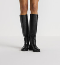 New for Cruise 2025, the D-Town boot is a style with a timeless look. The tubular silhouette crafted in black supple calfskin is embellished with a gold-finish metal Christian Dior Paris signature on the side. The refined shoe will elevate any look of the season. - Main composition: calfskin - Calfskin lining - Gold-finish metal Christian Dior Paris signature on the side - Textured calfskin sole with star, Christian Dior's lucky symbol - Made in Italy Size & Fit - The upper is 43.5 cm / 17 inches high - The style fits true to size, we recommend ordering your normal shoe size - Using our personalized tool will provide you with the best size recommendation - For more information, please review the size guide