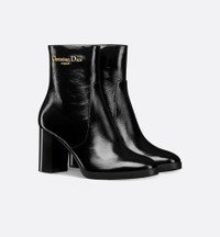 The D-Town heeled ankle boot is a style with a timeless look. Crafted in black crinkled patent calfskin, its silhouette is embellished with a gold-finish metal Christian Dior Paris signature on the side. An 8-cm (3-inch) block heel completes the refined shoe. - Main composition: calfskin - Calfskin lining - Gold-finish metal Christian Dior Paris signature on the side - Side zip closure - Calfskin and rubber sole with star, Christian Dior's lucky symbol - Made in Italy Size & Fit - Block heel: 8 cm / 3 inches - Using our personalized tool will provide you with the best size recommendation - For more information, please review the size guide