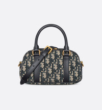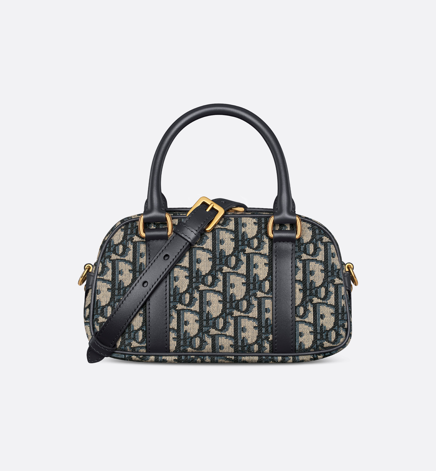 New for Summer 2025, the D-Vibe East-West nano bag rounds out the D-Vibe line with a streamlined silhouette and modern look. Crafted in blue Dior Oblique jacquard, it is enhanced by tonal leather detailing. A compartment with a slip pocket can accommodate all the essentials, while the leather top handles and adjustable, removable strap allow the bag to be carried by hand, worn over the shoulder or crossbody. - Main composition: cotton, calfskin and technical fabric - Cotton, linen and calfskin lining - Zip closure - One compartment - Interior slip pocket - Adjustable and removable leather shoulder strap - Dust bag included - Made in Italy Size & Fit - Dimensions: 20.5 x 13 x 5 cm / 8 x 5 x 2 inches (Length x Height x Width) - The size is suitable for a phone, a card holder and lipstick - Size and weight details may vary depending on the product's material