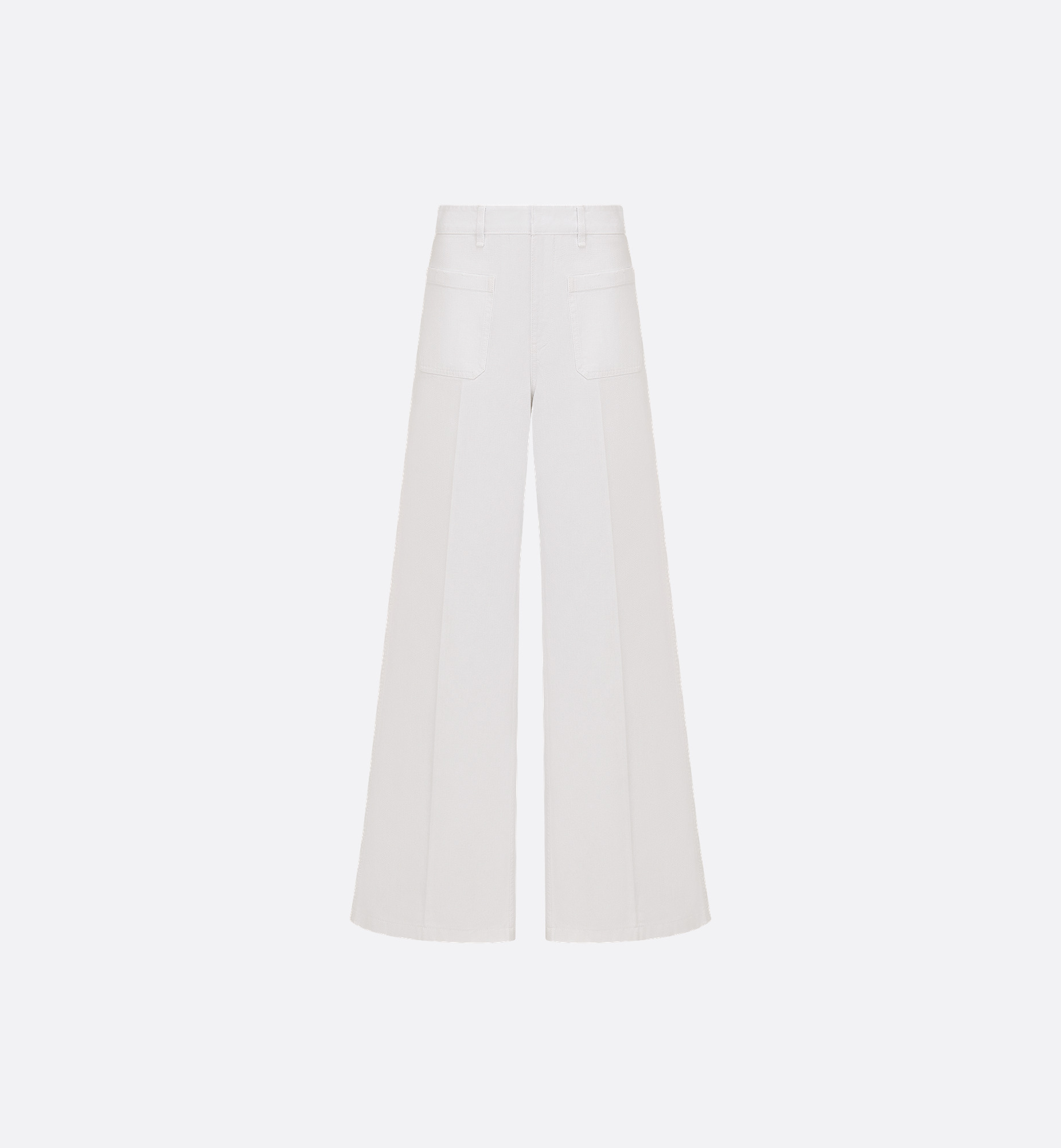 The jeans are from the Dior 8 capsule collection and are distinguished by an elegant flared silhouette with patch pockets. Crafted in white cotton denim, they feature a Christian Dior label on the back that is further enhanced by two horizontal bands and the style number, D04. The jeans will complete any casual look. - Belt loops - Concealed zip and hook closure - Christian Dior D04 jacron label - Unlined - 100% cotton - Made in Italy Size & Fit - Flared cut - High waist - Length: 110 cm / 43.5 inches (size 36) - Using our personalized tool will provide you with the best size recommendation - For more information, please review the size guide