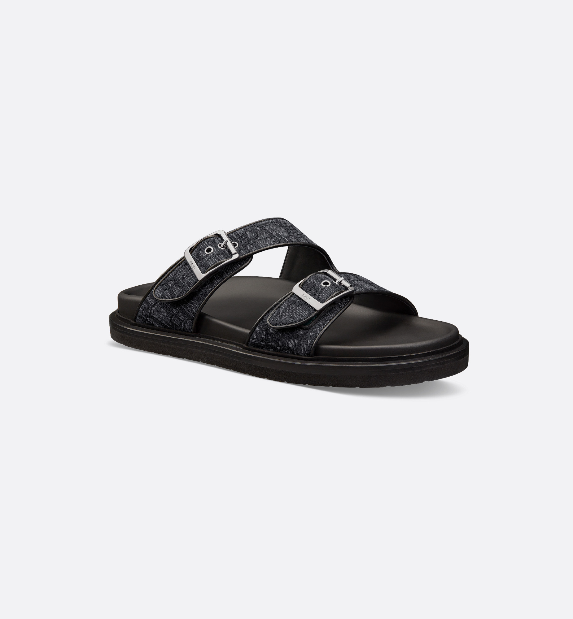The Dior Aqua sandal offers an elegant style with relaxed appeal. The design presents a new adjustable strap variation, highlighting the House's hallmark black Dior Oblique jacquard. Completed by a Dior signature on the buckle and tonal notched sole, the sandal will pair easily with Bermuda shorts or jeans. - Black Dior Oblique jacquard - Dior signature - Adjustable straps with a ruthenium-finish metal buckle - Black calfskin insole - Black notched rubber outsole - Welded construction - Dust bag included - Made in Italy Size & Fit - The style fits small to size: we recommend ordering a half-size larger than your normal size - Weight: 335 g / 12 ounces - Using our personalized tool will provide you with the best size recommendation - For more information, please review the size guide