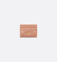 The Dior Caro Freesia card holder presents an elegant and practical style. Crafted in Rose des Vents supple calfskin with Cannage stitching, it is embellished with the CD signature on the front. Featuring five card slots, the refined accessory will fit anywhere and can be paired with other Dior Caro creations. - Main composition: calfskin and lambskin - Technical fabric lining - CD signature on the front - Five card slots - Made in Italy Size & Fit - Dimensions: 10.5 x 7.5 x 1 cm / 4 x 3 x 0.5 inches (Length x Height x Width)