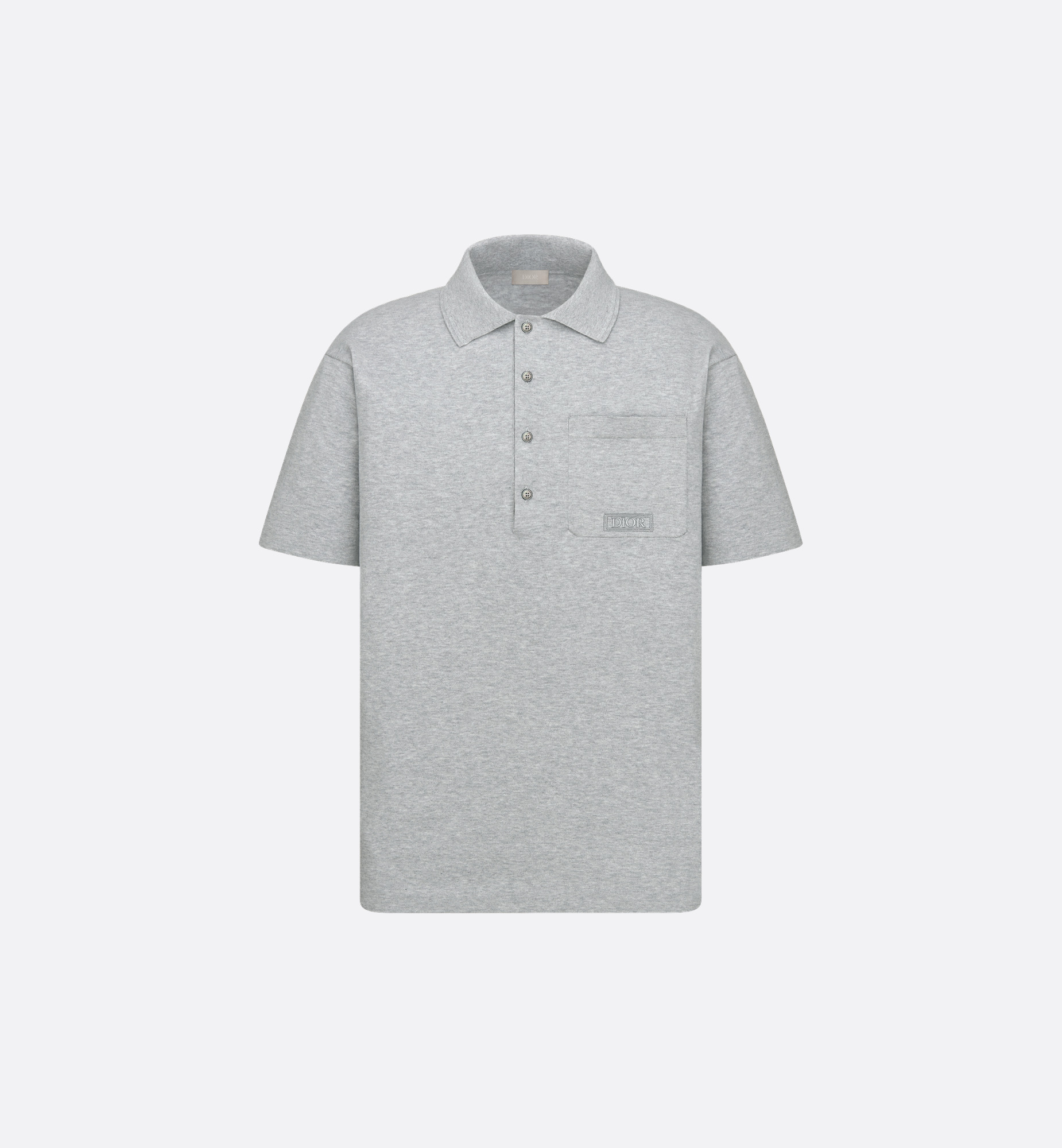 The Dior Icons polo shirt offers a couture variation of an iconic style. Crafted in a gray cotton and silk blend, it is embellished with a Dior embroidery on the chest pocket. The polo shirt's fluid silhouette will add an elegant touch to any casual outfit. - Dior embroidery on the chest pocket - Buttoned neckline - Mother-of-pearl buttons - Patch pocket on the chest - 85% cotton, 15% silk (18 gauge)* - Made in Italy Size & Fit - Relaxed fit - Size XXS: shoulder-to-shoulder width: 46 cm / 18 inches, chest size: 96 cm / 38 inches, outside and inside sleeve lengths: 19 and 12 cm / 7.5 and 4.5 inches, back and front lengths: 69 and 65 cm / 27 and 25.5 inches - Size XS: shoulder-to-shoulder width: 48 cm / 19 inches, chest size: 104 cm / 41 inches, outside and inside sleeve lengths: 20 and 12 cm / 8 and 4.5 inches, back and front lengths: 71 and 67 cm / 28 and 26.5 inches - Size S: shoulder-to-shoulder width: 50 cm / 19.5 inches, chest size: 108 cm / 42.5 inches, outside and inside sleeve lengths: 22 and 13 cm / 8.5 and 5 inches, back and front lengths: 73 and 68 cm / 28.5 and 27 inches - Size M: shoulder-to-shoulder width: 51 cm / 20 inches, chest size: 112 cm / 44 inches, outside and inside sleeve lengths: 22 and 13 cm / 8.5 and 5 inches, back and front lengths: 73 and 68 cm / 28.5 and 27 inches - Size L: shoulder-to-shoulder width: 53 cm / 21 inches, chest size: 116 cm / 45.5 inches, outside and inside sleeve lengths: 23 and 13 cm / 9 and 5 inches, back and front lengths: 74 and 67 cm / 29 and 26.5 inches - Size XL: shoulder-to-shoulder width: 55 cm / 21.5 inches, chest size: 122 cm / 48 inches, outside and inside sleeve lengths: 24 and 14 cm / 9.5 and 5.5 inches, back and front lengths: 75 and 69 cm / 29.5 and 27 inches - Size XXL: shoulder-to-shoulder width: 56 cm / 22 inches, chest size: 128 cm / 50.5 inches, outside and inside sleeve lengths: 26 and 14 cm / 10 and 5.5 inches, back and front lengths: 76.5 and 69.5 cm / 30 and 27.5 inches - Size 3XL: shoulder-to-shoulder width: 57 cm / 22.5 inches, chest size: 130 cm / 51 inches, outside and inside sleeve lengths: 26 and 14 cm / 10 and 5.5 inches, back and front lengths: 77 and 70 cm / 30.5 and 27.5 inches - Each measurement may have a normal variation of 2 cm / 0.75 inch - The model measures 187 cm / 73.5 inches and the item shown is in size M (FR) - Using our personalized tool will provide you with the best size recommendation - For more information, please review the size guide