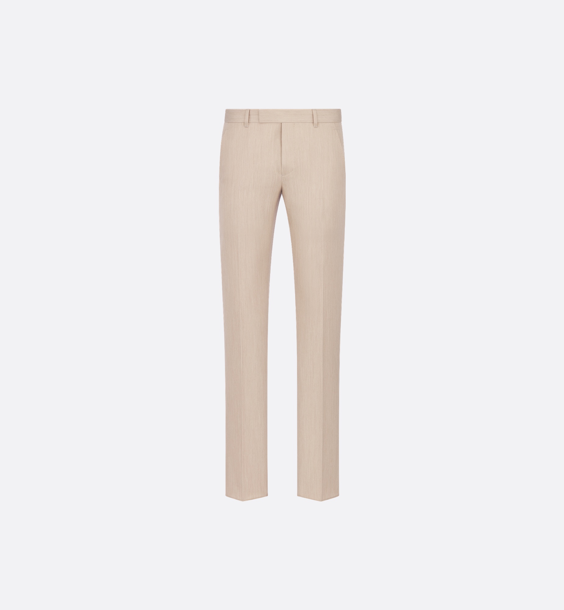 The Dior Icons line showcases the House's savoir-faire and traditions with an understated and elegant style. Made in heathered beige cashmere and cotton gabardine, the pants are distinguished by creases in the front and back, as well as by a V-shaped detail and metal button on the back. The wardrobe essential can be coordinated with a shirt to complete a timeless look. - Creases - V-shaped back detail - Belt loops - Zip and hook closure - Metal button on the back - Side slit pockets and rear piped pockets - 64% cashmere, 36% cotton and lining: 100% viscose - Made in Italy Size & Fit - Regular fit - Mid-rise waist - Leg opening: 19 cm / 7.5 inches (size 48) - Using our personalized tool will provide you with the best size recommendation - For more information, please review the size guide