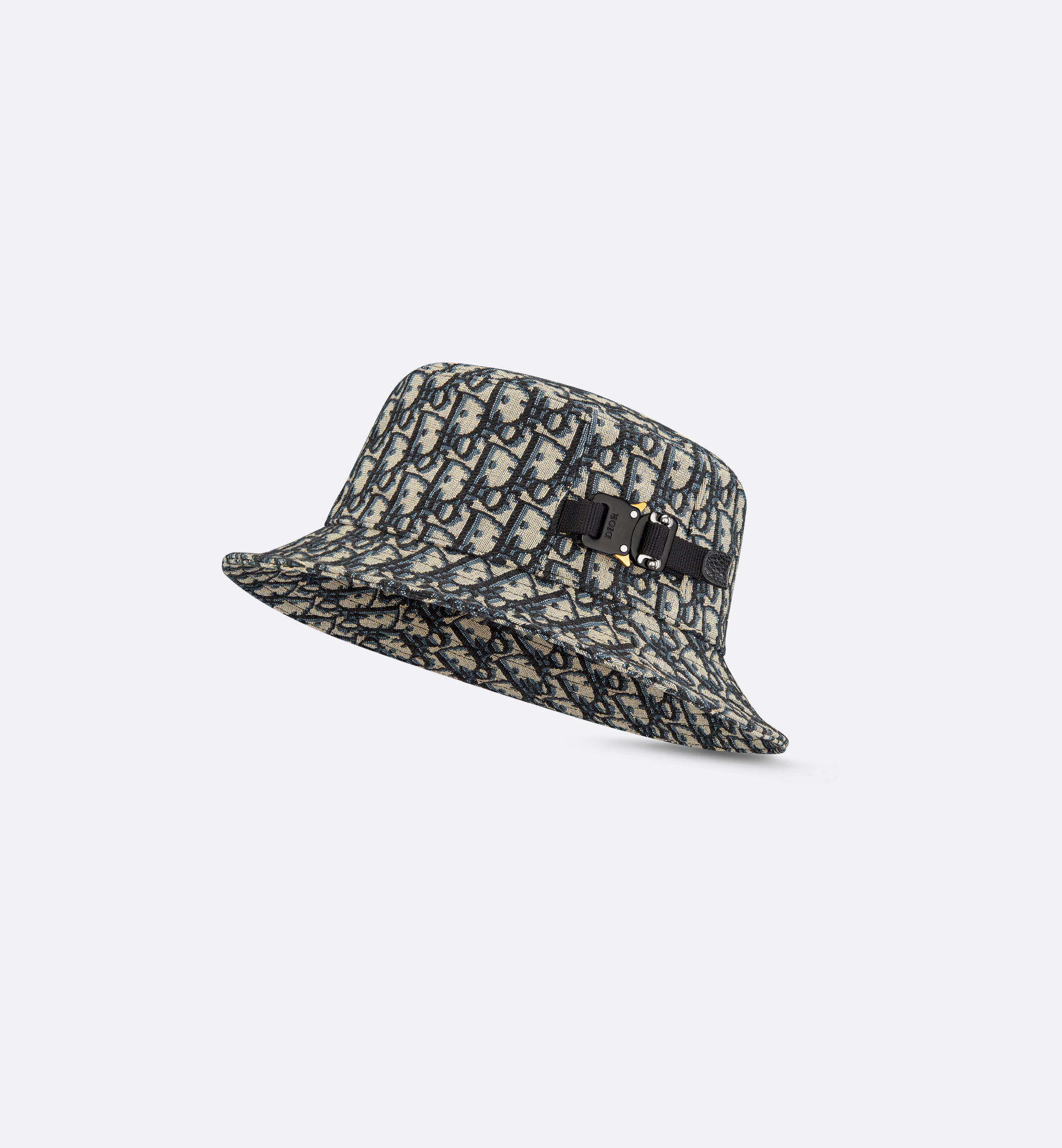 The essential bucket hat is revisited through House codes. Crafted in navy blue and beige blended cotton jacquard, it is distinguished by its all-over Dior Oblique motif, first seen on House creations in 1969. A utilitarian Dior buckle adorns the side with a hallmark touch. The bucket hat will lend a modern finish to all relaxed outfits. - All-over Dior Oblique jacquard - Dior buckle on the side - Black grosgrain and leather details - Grosgrain Dior signature on the interior - Tonal Dior Oblique jacquard interior lining - 88% cotton, 12% polyester, details: 100% sheepskin and lining: 100% cotton - Made in Italy Size & Fit - The bucket hat size corresponds to the head's circumference in cm / inches - Three sizes available: S (58 cm / 22.5 inches), M (59 cm / 23 inches) and L (60 cm / 23.5 inches)