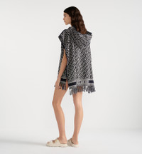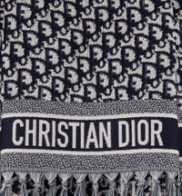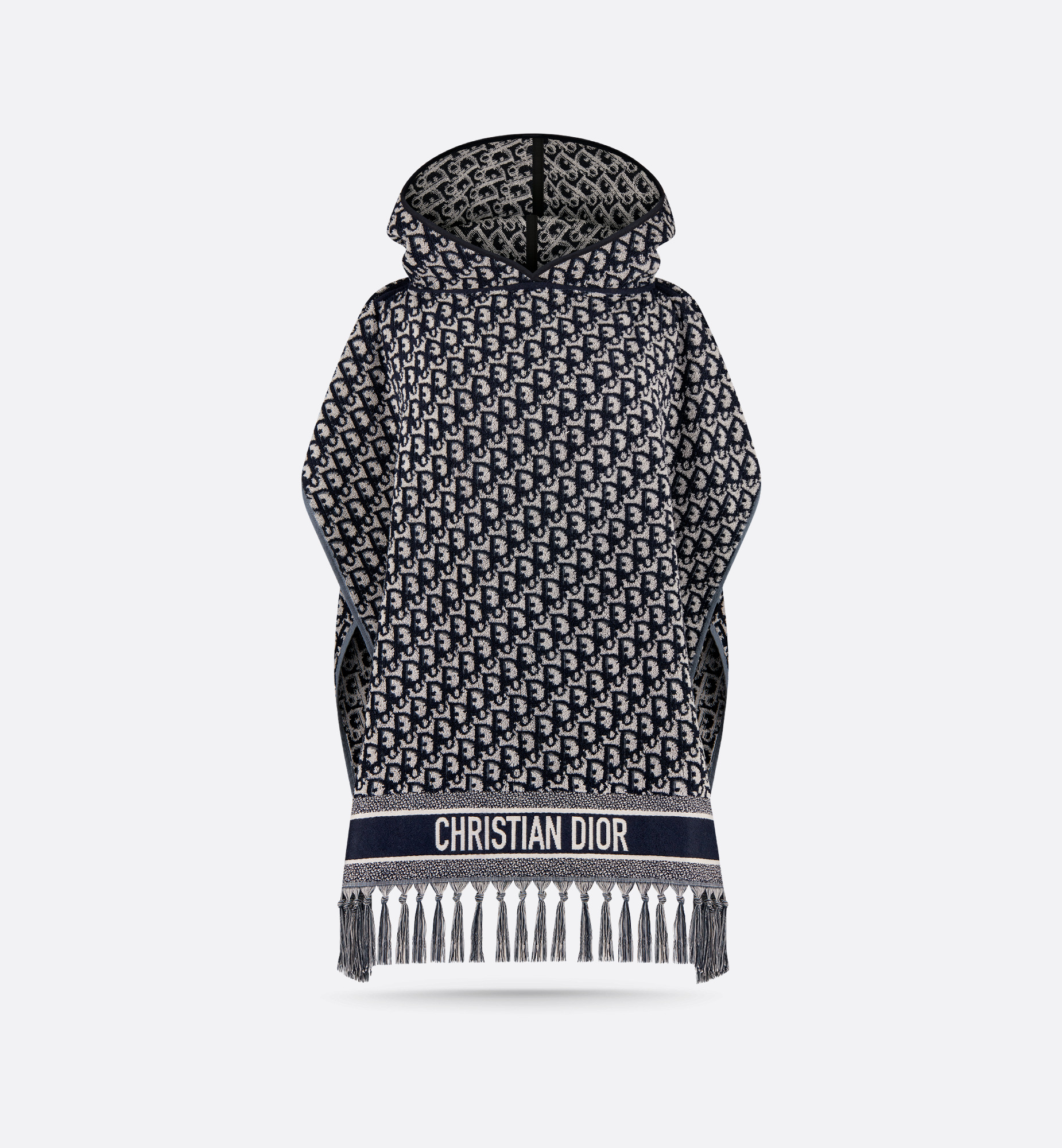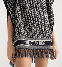 The hooded poncho highlights the navy blue Dior Oblique motif, the hallmark House pattern since 1969. Its terrycloth material, in soft and lightweight cotton, is embellished with tonal Christian Dior signature jacquard bands and hand-tied fringes. Original and modern, the poncho is worn over the shoulders and will lend an iconic touch to any summer outfit. - Navy blue Dior Oblique motif - Tonal jacquard bands with Christian Dior signature - Hand-tied fringe - Hood - Open sleeves and draped body - 100% cotton - Made in Italy Size & Fit - Dimensions: 70 x 145 cm / 27.5 x 57 inches
