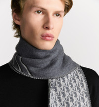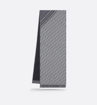The gray and white scarf is an original and modern piece. Crafted in wool jacquard, it has a striped band contrasting with the solid-color Dior Oblique jacquard. The scarf has fringed edges and can be worn in a classic manner wrapped around the neck or simply draped over the shoulders. - Gray and white Dior Oblique jacquard and solid gray jacquard - Striped contrasting band - Fringed edges - 100% wool - Made in Italy Size & Fit - Dimensions: 33 x 200 cm / 13 x 78.5 inches