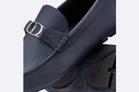 The Dior Odeon loafer offers an elegant variation of the classic dress shoe. Crafted in navy blue grained calfskin, the style is embellished with a palladium-finish brass CD Icon buckle on the vamp. Supple and long-lasting, the loafer has a rubber sole that provides comfort with every step. It can be paired with Bermuda shorts or jeans for a chic and relaxed silhouette. - Main composition: calfskin and brass - Cowhide leather and technical fabric lining - Palladium-finish brass CD Icon buckle - Low-top - Pull-on style - Black rubber sole - Tubular construction - Dust bag included - Made in Italy Size & Fit - The style fits true to size, we recommend ordering your normal shoe size - Using our personalized tool will provide you with the best size recommendation - For more information, please review the size guide