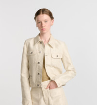 Part of the Dior Or capsule, the jacket combines elegance and modernity. Crafted in gold-tone cotton-blend denim, it features a cropped silhouette elevated by an embroidered bee, a Christian Dior Paris jacron label on the back and the Dior Oblique motif on the interior, while two flap pockets adorn the front. Its two side slit pockets and two interior patch pockets add a practical touch. The jacket can be paired with other creations from the Dior Or capsule. - Embroidered hallmark bee and CD signature - Christian Dior Paris jacron label on the back - Front button closure - Metal buttons - Dior Oblique motif on the interior - Unlined - 70% cotton, 20% viscose, 10% polyester film fiber - Made in Italy Size & Fit - Cropped fit - Long sleeves - Using our personalized tool will provide you with the best size recommendation - The model measures 179 cm / 70.5 inches and the item shown is in size 36 (FR) - For more information, please review the size guide