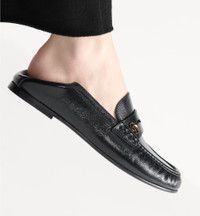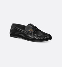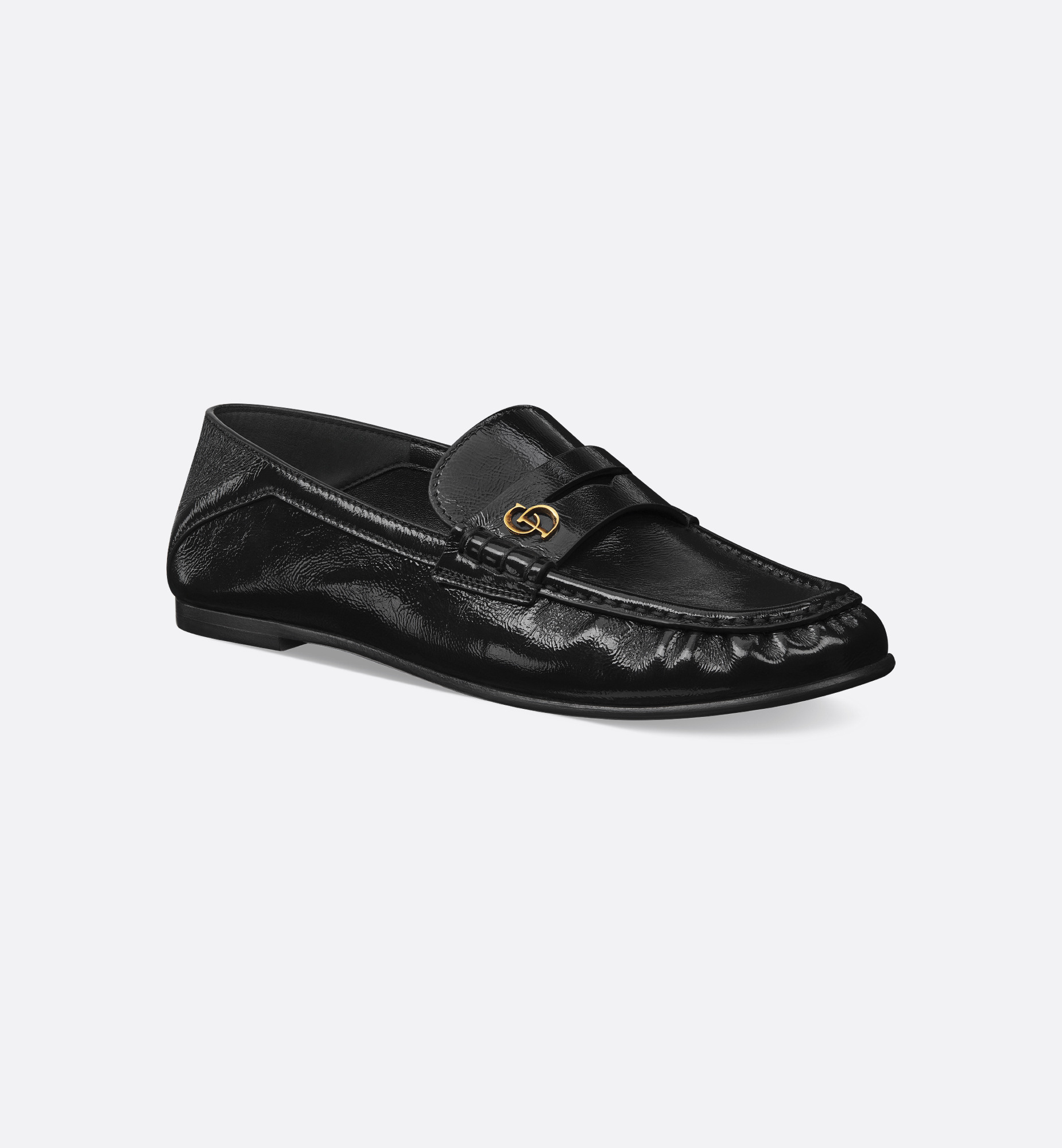 New for Winter 2025, the Dior Time loafer celebrates the House's exceptional savoir-faire in a fresh take on a classic style. Crafted in black crinkled patent calfskin, it showcases a gold-finish metal CD signature inspired by the archives on the vamp. Its supple, flexible construction and foldable heel counter allow the ultra-comfortable shoe to be worn traditionally or as a mule. - Main composition: calfskin - Calfskin lining - Gold-finish metal CD signature on the front - Foldable heel counter - Leather sole with star, Christian Dior's lucky symbol - Made in Italy Size & Fit - Using our personalized tool will provide you with the best size recommendation - For more information, please review the size guide