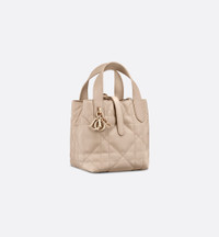 New for Fall 2025, the modern and practical Dior Toujours vertical tote bag is presented in a nano variation. Crafted in powder beige calfskin with Macrocannage topstitching, it has a spacious interior compartment to accommodate all the essentials. Its thin leather strap closure keeps items secure, while the D of the pale gold-finish metal CD Lock clasp twists to adjust the sides and enhance the bag's silhouette. The leather top handles are completed by a removable leather strap, allowing the bag to be carried by hand, worn over the shoulder or crossbody. - Main composition: calfskin - Calfskin lining - Double closure: a thin lace-through strap and a Christian Dior Paris strap with a CD Lock clasp - D.I.O.R. charms - Interior slip pocket - Leather top handles - Removable leather shoulder strap - Dust bag included - Made in Italy Size & Fit - Dimensions: 13 x 15 x 12 cm / 5 x 6 x 4.5 inches (Length x Height x Width) - The size is suitable for a phone, a card holder and lipstick - Drop length: 53 cm / 21 inches - Top handle drop length: 8 cm / 3 inches - Size and weight details may vary depending on the product's material