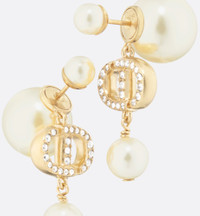 The Dior Tribales earrings are offered in an elegant and timeless variation. The hallmark rear resin pearls anchor a gold-finish metal CD signature with pave-set white crystals and a white resin pearl. The earrings can be coordinated with other creations from the CD Navy line. - White resin pearls - White crystals - CD signature - Gold-finish metal - Integrated clasp on the rear pearl - Sold as a pair - Made in Portugal Size & Fit - Length: 2.5 cm / 1 inch - Resin pearl diameter: 1.4 cm / 0.5 inch