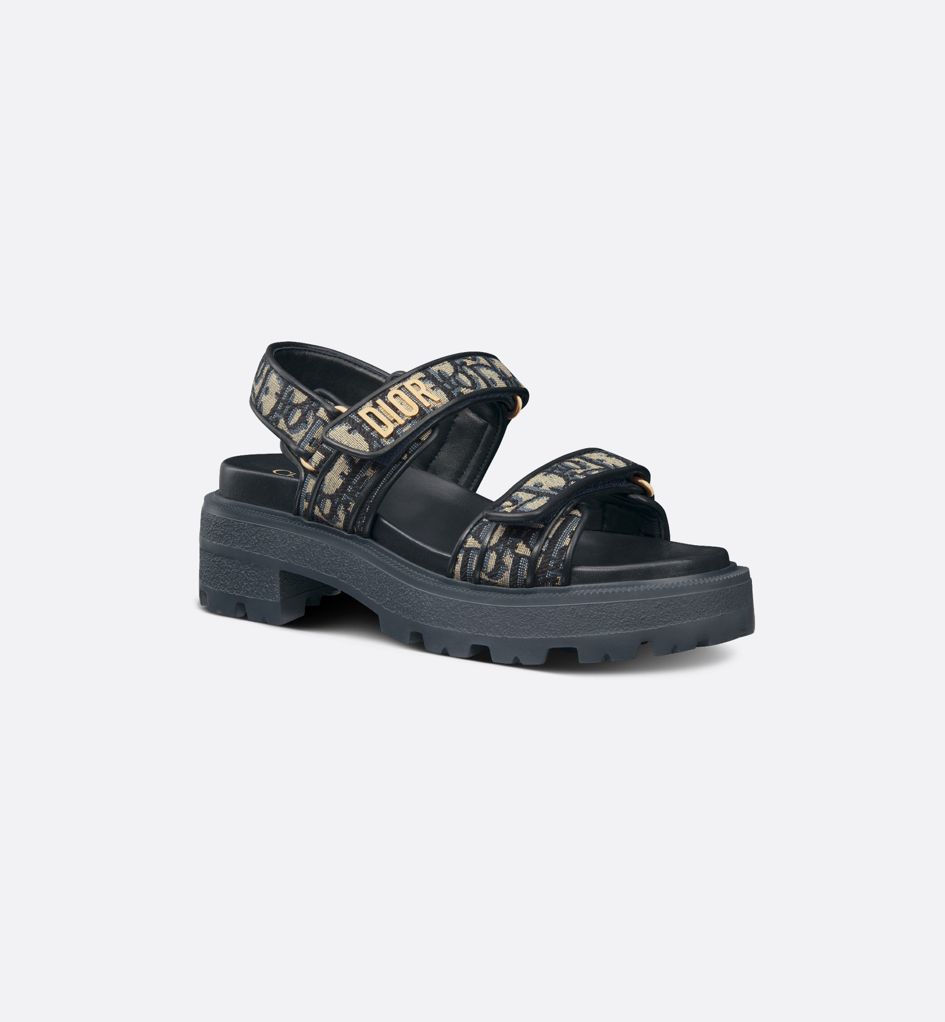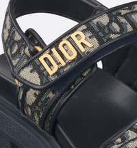 The Dioract sandal is recast into a modern platform. Crafted in cotton embroidered with a deep blue Dior Oblique motif, it features self-fastening straps enhanced by a gold-finish metal Dior signature on the upper strap. Completed by an ultralightweight and comfortable anatomically shaped insole, the sandal will lend a contemporary touch to any look. - Main composition: cotton, lambskin and technical fabric - Lambskin lining - Gold-finish metal Dior signature - Two adjustable self-fastening straps - Anatomically shaped EVA insole - Thick EVA sole with star, Christian Dior's lucky symbol - Made in Italy Size & Fit - Heel: 5.5 cm / 2 inches and platform: 3 cm / 1 inch - Weight: 395 g / 14 ounces - Weight details may vary depending on the product's material - Using our personalized tool will provide you with the best size recommendation - For more information, please review the size guide