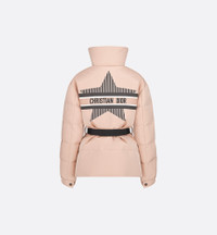 Part of the DiorAlps capsule, the puffer jacket reimagines the winter sports universe with the House's couture codes. Crafted in pink quilted technical taffeta, it showcases the black Dior Star motif embellished with the Christian Dior signature on the back. Featuring interior zip pockets, the style is enhanced by a stand collar and technical belt highlighting the waist. The elegant and practical puffer jacket can be worn with other creations from the DiorAlps capsule. - Christian Dior signature on the back - Technical belt - Front zip closure - Windproof lining and membrane - Filling: 100% polyester - 100% polyester and lining: 100% polyester - Made in Italy Size & Fit - Relaxed fit - Long sleeves - Using our personalized tool will provide you with the best size recommendation - For more information, please review the size guide