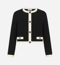 Part of the Dioriviera capsule, the jacket reframes codes of elegance with a laid-back spirit. Crafted in a black technical knit, it features a regular-fit silhouette embellished with contrasting ecru edges and buttons decorated with a star. The jacket can be paired with the matching skirt to complete a Dioriviera look. - Front button closure - Buttons decorated with a star - Buttoned cuffs - 83% viscose, 17% polyester (12 gauge)* - Made in Italy - Treat with extra care and gently dry clean Size & Fit - Cropped regular fit - Long sleeves - The model measures 178 cm / 70 inches and the item shown is in size 36 (FR) - Using our personalized tool will provide you with the best size recommendation - For more information, please review the size guide