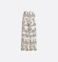 Part of the Dioriviera capsule, the pants showcase Pietro Ruffo's white and hazelnut Toile de Jouy Palms motif, capturing the beauty of nature with a vibrant jungle scene populated by diverse wildlife. Crafted in silk twill, they feature black piping and practical side pockets. The lightweight and refined pants can be worn with other Dioriviera creations. - Black piping - Elastic waistband - Concealed front button closure - Unlined - 100% silk - Made in Italy Size & Fit - Loose fit - High waist - We recommend ordering a size smaller than your regular size for a more comfortable fit - The model measures 180 cm / 71 inches and the item shown is in size 36 (FR) - Using our personalized tool will provide you with the best size recommendation - For more information, please review the size guide