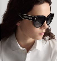 The DiorPacific B2I sunglasses are a modern butterfly design. The black acetate frame is adorned with gold-finish star details on the front, while the acetate temples present a black and white double-layer effect showcasing the Christian Dior signature. Completed by gradient gray lenses, the new essential style will lend a contemporary touch to any look. - Black acetate frame front - Gradient gray lenses - Black and white acetate temples with a double-layer effect and Christian Dior signature - Gold-tone Christian Dior signature on right temple interior - 100% UVA/UVB protection - Filter category: 3 - Suitable for prescription - Made in Italy Size & Fit - Lenses: 54 mm / 2 inches, Bridge: 20 mm / 1 inch, Temples: 140 mm / 5.5 inches