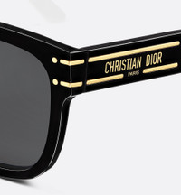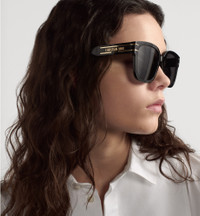 The DiorSignature S7F sunglasses enhance the now iconic House line. The couture-spirit design is distinguished by a contemporary and casual square shape. The black acetate frame reveals the Christian Dior Paris signature embellished with gold-finish metal lines that extend onto the front. Completed by gray lenses, the modern sunglasses will lend a decisively Dior style to any look. - Black acetate frame - Gray lenses - Black acetate temples with Christian Dior Paris signature - Gold-tone Christian Dior signature on right temple interior - 100% UVA/UVB protection - Filter category: 3 - Can be adapted for prescription lenses - Made in Italy Size & Fit - The nose pads are specially designed to adapt to lower nose bridges - Lenses: 58 mm / 2.5 inches, Bridge: 18 mm / 0.5 inch, Temples: 145 mm / 5.5 inches