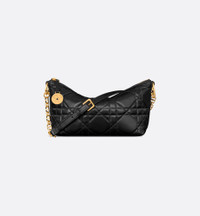 The Diorstar hobo bag with chain has a practical, modern look. Crafted in black lambskin with Macrocannage stitching, it features a supple silhouette and spacious compartment. Its design is enhanced by a zip closure embellished with a medallion engraved with the Christian Dior Paris signature and a star, the House's flagship symbol, while discreet CD studs adorn the sides. The interior has card slots, while the leather insert on the adjustable CD chain link strap allows the bag to be worn comfortably over the shoulder. - Main composition: lambskin - Lambskin and technical fabric lining - Zip closure with engraved Christian Dior Paris medallion and star - One compartment - One slip pocket - Four card slots - Adjustable chain with antique gold-finish metal CD links and leather insert - Made in Italy Size & Fit - Dimensions: 22 x 14.5 x 10 cm / 8.5 x 5.5 x 4 inches (Length x Height x Width) - The size is suitable for a phone, two card holders and sunglasses - Strap length: 53 – 62 cm / 21 – 24.5 inches - Drop length: 21 – 27 cm / 8.5 – 10.5 inches