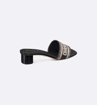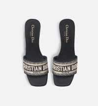 The Dway slide is a timeless, hallmark piece. The deep blue cotton upper is embroidered with the instantly recognizable Christian Dior Paris signature. Featuring an elegant square toe and 3.5 cm (1.5) cylindrical heel, the slide will effortlessly complete a wide range of outfits. - Christian Dior Paris signature embroidered on the upper - Matte leather insole - Sole with engraved star, Christian Dior's lucky symbol - Made in Italy Size & Fit - Cylindrical heel: 3.5 cm / 1.5 inches - The style fits true to size: we recommend ordering your normal shoe size - For those with wider feet, we recommend ordering a half-size larger than your normal size - For more information, please review the size guide