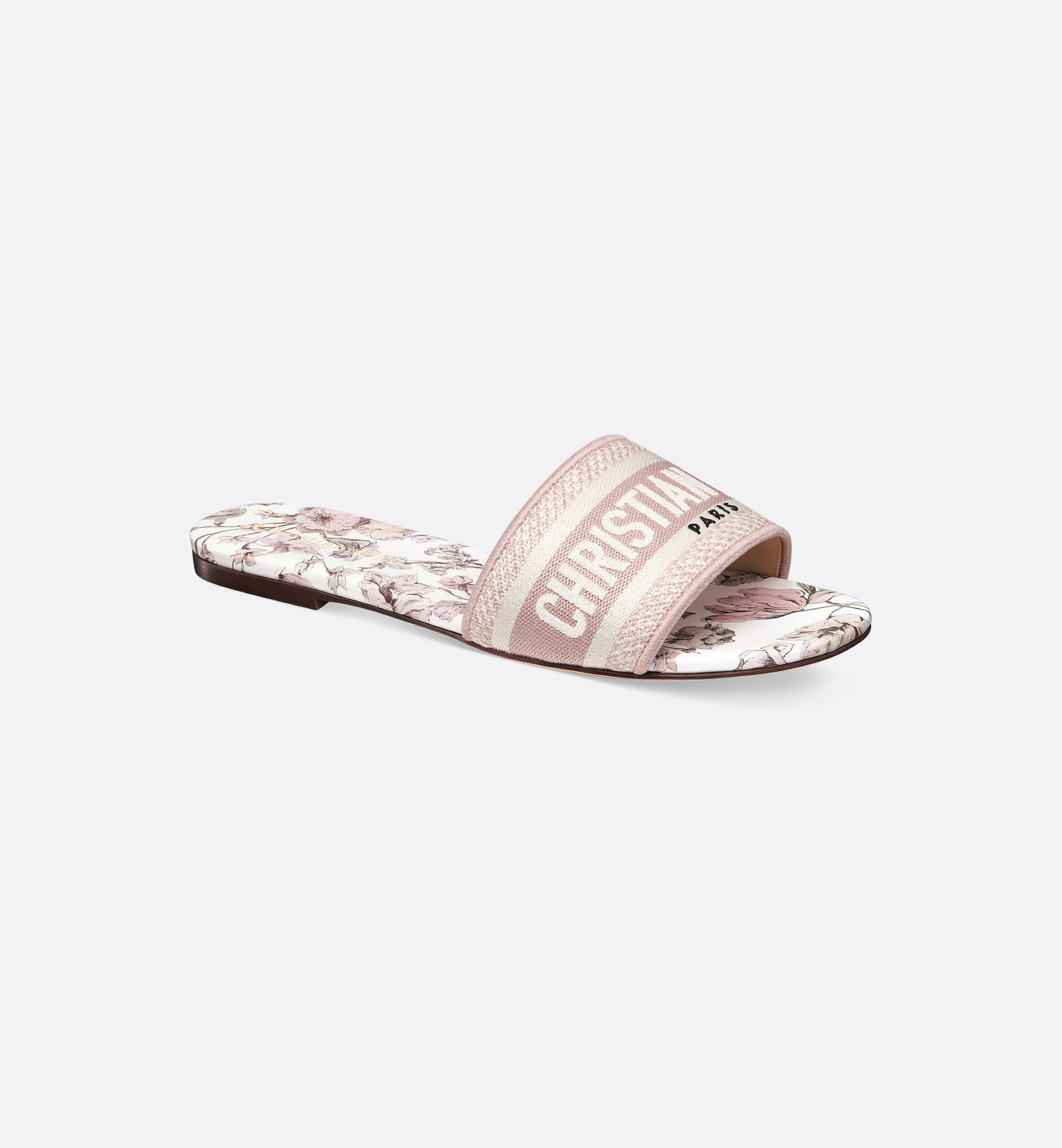 The Dway slide is a hallmark and timeless style featuring Pietro Ruffo's Rose des Vents pink Millefiori motif, a delicate pastel variation inspired by baroque paintings. The upper is embroidered with metallic thread and accented by the Christian Dior Paris signature for an unmistakable touch. The minimalist silhouette will slip on easily to complete a laid-back outfit. The shoe can be paired with other Millefiori creations. - Main composition: cotton - Goatskin lining - Christian Dior Paris signature embroidered on the upper - Millefiori leather insole - Calfskin sole with engraved star, Christian Dior's lucky symbol - Made in Italy Size & Fit - Using our personalized tool will provide you with the best size recommendation - For more information, please review the size guide