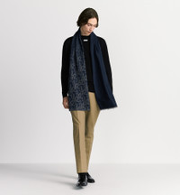 New for Winter 2025, the navy blue and white scarf is a modern and elegant piece. Crafted in wool and silk jacquard, it features the Dior Gravity motif enhanced by a gradient effect. The scarf has fringed edges and can be worn in a classic manner, wrapped around the neck, or simply draped over the shoulders. - Navy blue and white gradient Dior Gravity jacquard - Fringed edges - 70% wool, 30% silk - Made in Italy Size & Fit - Dimensions: 70 x 200 cm / 27.5 x 78.5 inches