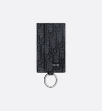 The key case is a practical piece with refined charm. Crafted in black Dior Oblique jacquard, it showcases a ruthenium-finish brass Dior signature on the front. Equipped with a snap closure, the black smooth calfskin interior compartment can hold up to six keys. Thanks to the removable Dior-engraved ring, this elegant key case can attach to a belt loop or bag. - Removable Dior-engraved ring - Six key hooks - Ruthenium-finish brass Dior signature on the front - Embossed Dior signature on interior - Dust bag included - Made in Italy/Spain Size & Fit - Dimensions: 7 x 10.5 x 2 cm / 3 x 4 x 1 inches (Length x Height x Width)