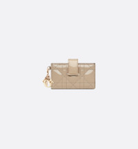 The Lady Dior Jasmine card holder pays tribute to the Dior leather artisans' savoir-faire with its timeless Cannage topstitching. Crafted in sand-colored patent calfskin, the style is compact and functional and can accommodate the daily essentials. Embellished with detachable D.I.O.R. charms and a snap flap closure, the gusseted card holder can be coordinated with other Lady Dior creations. - Detachable D.I.O.R. charms - Front snap tab closure - Five gusseted compartments - Made in Italy/Spain Size & Fit - Dimensions: 10.5 x 6 x 3 cm / 4 x 2.5 x 1 inches (Length x Height x Width)
