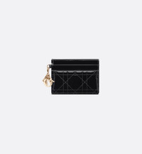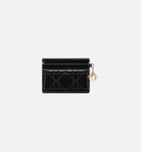 The Lady Dior Freesia card holder presents an elegant and practical style. Crafted in black patent calfskin with Cannage stitching, it is embellished with detachable D.I.O.R. charms. Featuring five card slots, the refined accessory easily slips into any pocket or bag and can be paired with other Lady Dior creations. - Detachable D.I.O.R. charms - Five card slots - Made in Italy Size & Fit - Dimensions: 10.5 x 7.5 x 1 cm / 4 x 3 x 0.5 inches (Length x Height x Width)