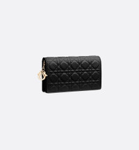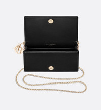 The Lady Dior pouch with chain, crafted in black lambskin, is distinguished by the emblematic Cannage topstitching and detachable D.I.O.R. charms. This unique accessory may be worn with or without its chain strap and features two removable elements: a card holder and a zipped pouch. Each may be carried individually. The pouch will instantly stand out and pairs well with other pieces from the same line. - Main composition: lambskin - Lambskin and technical fabric lining - Detachable D.I.O.R. charms - One large interior compartment - One slip pocket - Two removable elements: one zipped pouch and one pouch with eight card slots and one slip pocket - Removable chain strap - Made in Italy Size & Fit - Dimensions: 21.5 x 11.5 x 3 cm / 8.5 x 4.5 x 1 inches (Length x Height x Width) - The size is suitable for a phone and a card holder - Chain length: 120 cm / 47 inches - Chain drop length: 70 cm / 27.5 inches