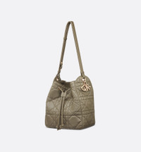 New for Winter 2025, the D-Motion bag is distinguished by a modern and practical bucket design. Crafted in clay green lambskin with Cannage stitching, the supple style features a drawstring closure that opens to reveal a spacious interior compartment with a zip pocket and two slip pockets on the sides for all the essentials. Adorned with pale gold-finish metal D.I.O.R. charms, the medium bag has an adjustable strap with a sliding design, allowing it to be worn on the shoulder or crossbody. - Main composition: lambskin and calfskin - Calfskin lining - D.I.O.R. charms - Drawstring closure - Adjustable leather strap - Two interior slip pockets - Interior zip pocket - Dust bag included - Made in Italy Size & Fit - Dimensions: 23 x 24 x 13 cm / 9 x 9.5 x 5 inches (Length x Height x Width) - The size is suitable for a Voyageur wallet, a phone, a card holder, sunglasses and lipstick - Strap length: 48 – 52 cm / 19 – 20.5 inches - Size and weight details may vary depending on the product's material