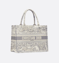 Introduced by Maria Grazia Chiuri, Creative Director of Christian Dior, the Dior Book Tote has become a staple of the Dior aesthetic. Designed to hold all the daily essentials, the style is fully embroidered with the ecru and gray Toile de Jouy motif. Adorned with the Christian Dior Paris signature on the front, the medium tote exemplifies the House's signature savoir-faire and may be carried by hand or worn over the shoulder. - Christian Dior Paris signature on the front - Dust bag included - Made in Italy Size & Fit - Dimensions: 36 x 27.5 x 16.5 cm / 14 x 11 x 6.5 inches (Length x Height x Width) - The bag's large size can accommodate a 15-inch laptop, a pouch, a wallet, a phone, sunglasses and lipstick - Handle length: 42 cm / 16.5 inches - Handle drop length: 16 cm / 6.5 inches - Weight: 600 g / 21 ounces
