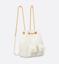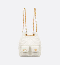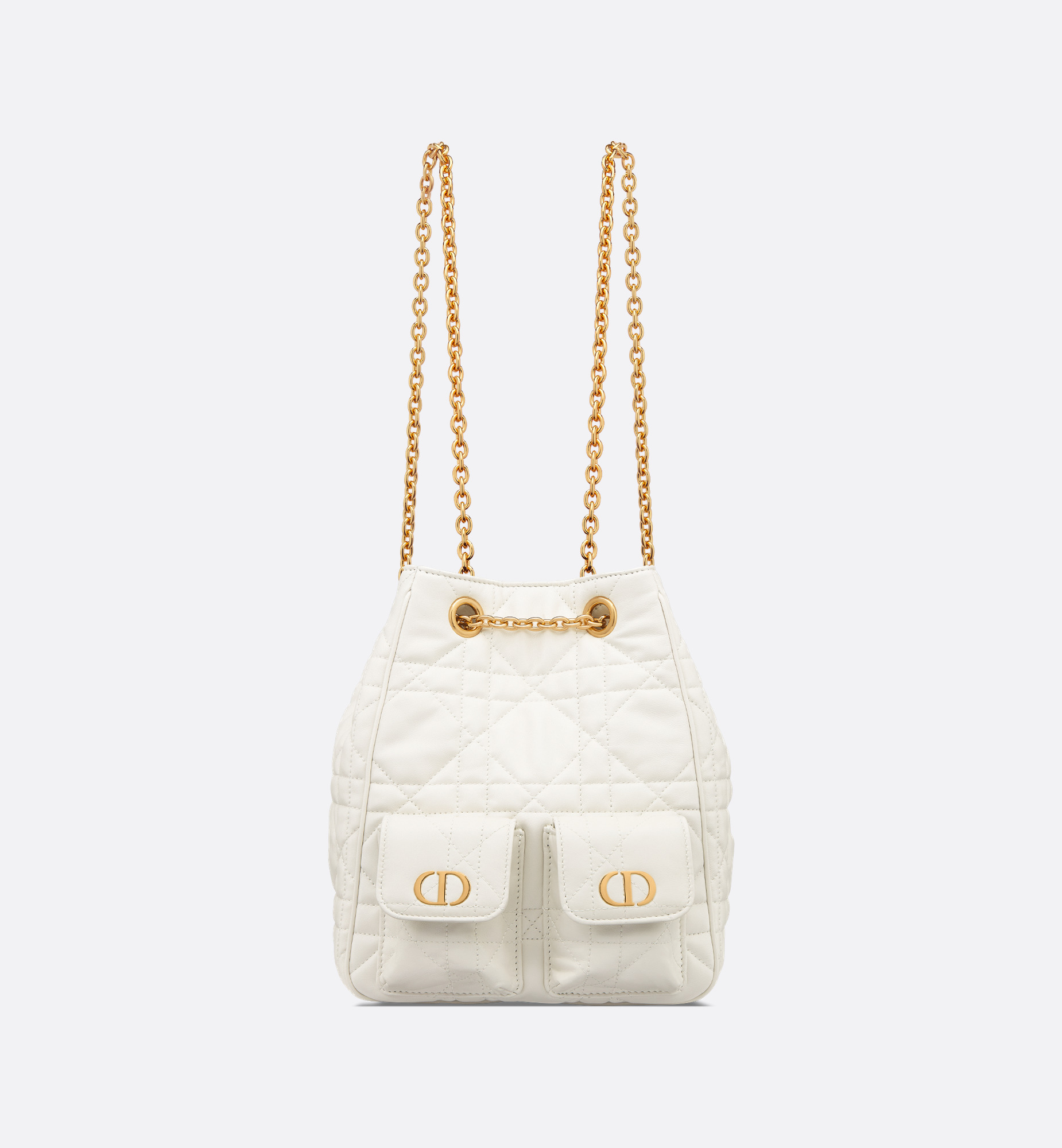 New for Winter 2025, the Dior Caro Multicarry backpack embodies modern and elegant style. Crafted in latte lambskin with Macrocannage topstitching, the versatile creation stands out with a streamlined silhouette that opens to reveal a spacious main compartment with a magnetic closure, completed by two small flap pockets adorned with a gold-finish metal CD signature on the front. Featuring a chain with a sliding design and leather inserts, the medium bag can be carried comfortably as a backpack or worn over the shoulder using the double chain strap. - Main composition: lambskin - Calfskin lining - CD signatures on the front - Magnetic closure - Adjustable chain with leather inserts - Front magnetic flap pockets - Interior zip pocket - Dust bag included - Made in Italy Size & Fit - Dimensions: 21 x 25 x 14 cm / 8.5 x 10 x 5.5 inches (Length x Height x Width) - The size is suitable for a phone, a wallet, a card holder, sunglasses and lipstick - Strap length: 79.5 – 85.5 cm / 31.5 – 33.5 inches - Drop length: 35 – 39 cm / 14 – 15.5 inches - Weight: 630 g / 22 ounces - Size and weight details may vary depending on the product's material