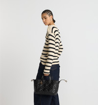 The Dior Toujours bag is distinguished by a casual and practical design. Crafted in black calfskin with Macrocannage topstitching, it showcases a spacious interior compartment with a matching pouch to organize the essentials. Its thin leather strap closure keeps items secure while the D of the CD Lock clasp twists to adjust the sides and enhance the bag's silhouette. The leather top handles can be adjusted using the small notches so the medium bag can be carried by hand or worn over the shoulder. - Main composition: calfskin - Calfskin lining - Double closure: a thin lace-through strap and a Christian Dior Paris strap with a CD Lock clasp - D.I.O.R. charms - Removable interior pouch - Adjustable leather top handles - Dust bag included - Made in Italy Size & Fit - Dimensions: 28.5 x 21.5 x 17 cm / 11 x 8.5 x 6.5 inches (Length x Height x Width) - The size is suitable for two wallets, a phone, two card holders, sunglasses and lipstick - Top handle length: 29 – 54 cm / 11.5 – 21.5 inches - Top handle drop length: 10.5 – 23 cm / 4 – 9 inches - Weight: 850 g / 30 ounces - Size and weight details may vary depending on the product's material