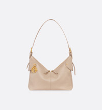 New for Cruise 2026, the Dior Voyage bag combines soft lines with sophisticated details for a harmonious silhouette. The powder beige grained calfskin leatherwork showcases Flat Macrocannage topstitching in an interpretation of the House's iconic motif. The supple construction is enhanced by antique gold-finish metal D.I.O.R. charms and finely crafted leather accents for added structure, while the main compartment has a secure and practical two-way zip closure. Featuring a top handle with adjustable buckles, the medium bag can be worn over the shoulder as a daily companion. - Main composition: calfskin - Cotton and linen lining - Two-way zip closure - D.I.O.R. charms - Adjustable leather top handle with antique gold-finish metal buckles - Interior zip pocket - Dust bag included - Made in Italy Size & Fit - Dimensions: 28 x 18 x 12 cm / 11 x 7 x 4.5 inches (Length x Height x Width) - The size is suitable for a tablet, a Voyageur slim wallet, a card holder, a phone, sunglasses and lipstick - Size and weight details may vary depending on the product's material