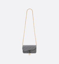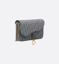 The Saddle pouch with chain is a modern and practical creation with smooth and harmonious lines. Crafted in gray Denim Dior Oblique jacquard revisiting the iconic House motif, it features an asymmetric flap and an antique gold-finish metal D stirrup. The spacious interior will accommodate all the essentials, while the chain allows it to be worn over the shoulder or crossbody. The medium pouch will coordinate perfectly with other Saddle creations. - Main composition: cotton and calfskin - Cotton, calfskin and technical fabric lining - Flap closure - Front D stirrup - One compartment - Six card slots - One slip pocket - One zip pocket - Made in Italy Size & Fit - Dimensions: 21.5 x 13.5 x 4.5 cm / 8.5 x 5.5 x 2 inches (Length x Height x Width) - The size is suitable for a phone, a card holder and lipstick - Chain length: 119.5 cm / 47 inches - Chain drop length: 56 cm / 22 inches - Weight: 390 g / 14 ounces - Size and weight details may vary depending on the product's material