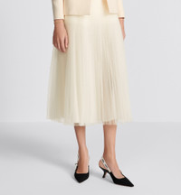 The mid-length pleated skirt is an emblematic style reimagined by Maria Grazia Chiuri for Dior. Crafted using several ecru plumetis tulle voiles, it offers a play on transparency and highlights the waist with a wide flat belt. The skirt pairs well with a cashmere knit, printed T-shirt or a Bar Jacket for an iconic Dior silhouette. - Wide waistband - Pleated style - Side zip and hook closure - Tonal half lining - 100% polyamide and lining: 100% silk - Made in Italy Size & Fit - Flared cut - Mid-length - Size 36: waist size: 68 cm / 27 inches, hip circumference: 86 cm / 34 inches, garment length: 84 cm / 33 inches - Size 38: waist size: 72 cm / 28.5 inches, hip circumference: 90 cm / 35.5 inches, garment length: 84 cm / 33 inches - Size 40: waist size: 76 cm / 30 inches, hip circumference: 94 cm / 37 inches, garment length: 84 cm / 33 inches - Size 42: waist size: 80 cm / 31.5 inches, hip circumference: 98 cm / 38.5 inches, garment length: 84 cm / 33 inches - Size 44: waist size: 84 cm / 33 inches, hip circumference: 102 cm / 40 inches, garment length: 84 cm / 33 inches - Size 46: waist size: 88 cm / 34.5 inches, hip circumference: 106 cm / 41.5 inches, garment length: 84 cm / 33 inches - Size 48: waist size: 92 cm / 36 inches, hip circumference: 110 cm / 43.5 inches, garment length: 84 cm / 33 inches - Size 50: waist size: 96 cm / 38 inches, hip circumference: 114 cm / 45 inches, garment length: 84 cm / 33 inches - Each measurement may have a normal variation of 2 cm / 0.75 inch - Using our personalized tool will provide you with the best size recommendation - For more information, please review the size guide