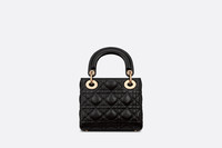 The Lady Dior bag epitomizes the House's vision of elegance and beauty. Refined and sleek, the timeless creation is crafted in black lambskin and covered with Cannage stitching, creating an instantly recognizable quilted texture. The pale gold-finish metal D.I.O.R. charms embellish and illuminate its silhouette. Featuring a removable chain shoulder strap, the miniature Lady Dior bag can be carried by hand or worn crossbody as an ideal evening wear companion. - Main composition: lambskin - Goatskin and lambskin lining - Detachable chain - Interior zip pocket - The bag may be paired with the House's different embroidered straps - Dust bag included - Made in Italy Size & Fit - Dimensions: 17 x 15 x 7 cm / 6.5 x 6 x 3 inches (Length x Height x Width) - The size is suitable for a phone, a card holder and lipstick - Chain length: 119 cm / 47 inches - Chain drop length: 58 cm / 23 inches - Weight: 690 g / 24.5 ounces