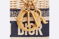 The Lady Dior bag epitomizes Dior's vision of elegance and beauty. Sleek and refined, the timeless style exemplifies the House savoir-faire with hand-woven natural wicker. Featuring leather handles and an interior drawstring pouch in blue Dior Oblique jacquard, the design is enhanced by an embroidered Christian Dior signature band, inspired by the Dior Book Tote. A wide, removable embroidered strap allows the miniature bag to be carried in the hand, over the shoulder or crossbody. - Wide, removable, reversible and adjustable embroidered shoulder strap - Blue Dior Oblique jacquard interior with leather drawstring cords - One interior zip pocket and one interior slip pocket - Dust bag included - Made in Italy Size & Fit - Dimensions: 17 x 15 x 7 cm / 6.5 x 6 x 3 inches (Length x Height x Width) - The size is suitable for a phone, a card holder and lipstick - Strap length: 82 – 125 cm / 32.5 – 49 inches - Drop length: 39 – 61 cm / 15.5 – 24 inches - Weight: 850 g / 30 ounces