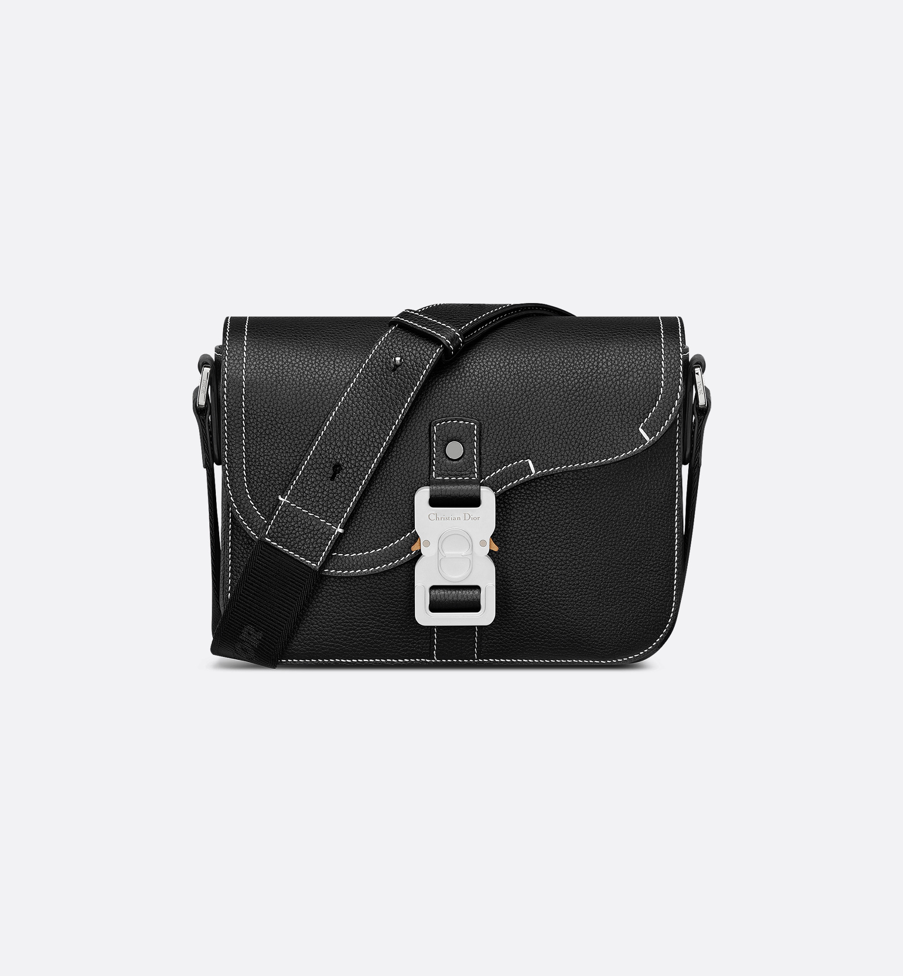 The Saddle messenger bag is a compact and modern creation. Crafted in black grained calfskin, it features a Saddle flap that closes with an aluminum buckle. Its spacious interior is completed by a rear slip pocket to house all the essentials. Thanks to its adjustable leather and Christian Dior jacquard strap, the small style can be worn over the shoulder or crossbody. - Dior Oblique nylon interior - Main compartment with flap and CD-signature aluminum buckle - Interior slip pocket - Rear slip pocket - Adjustable leather and Christian Dior nylon jacquard shoulder strap - Embossed Dior signature on the interior - Dust bag included - Made in Italy Size & Fit - Dimensions: 23 x 17.5 x 6 cm / 9 x 7 x 2.5 inches (Length x Height x Width) - The main compartment's size is suitable for all phone models - Strap length: 91 – 128 cm / 36 – 50.5 inches - Drop length: 40 – 60 cm / 15.5 – 23.5 inches